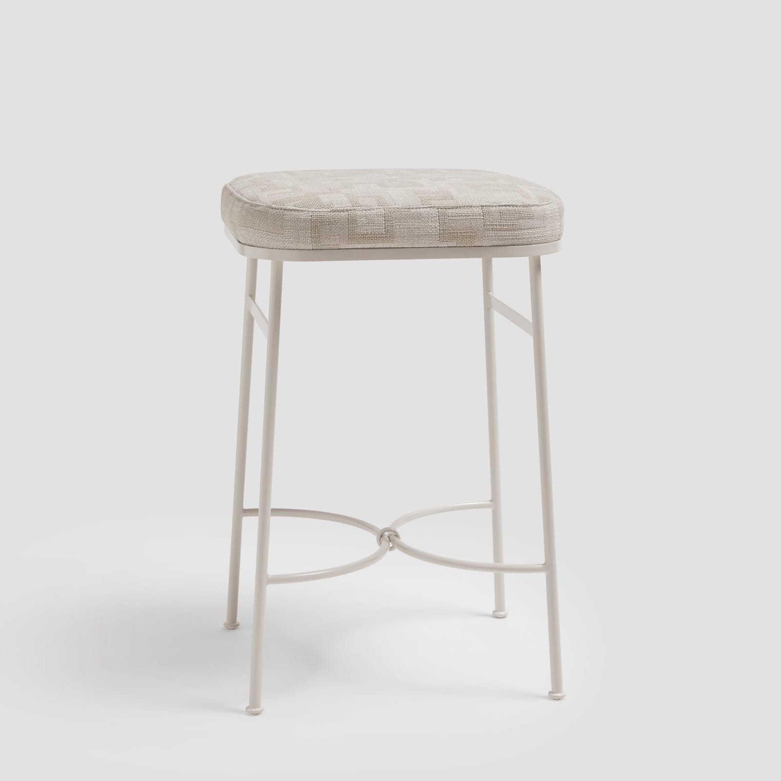 Shoji White powdercoated frame with hard-wearing jacquard cushion by Dedar