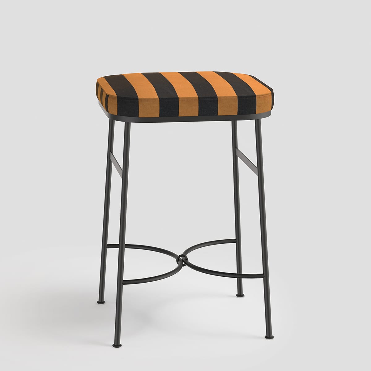 Blackened steel frame with hard-wearing canvas cushion by Dedar