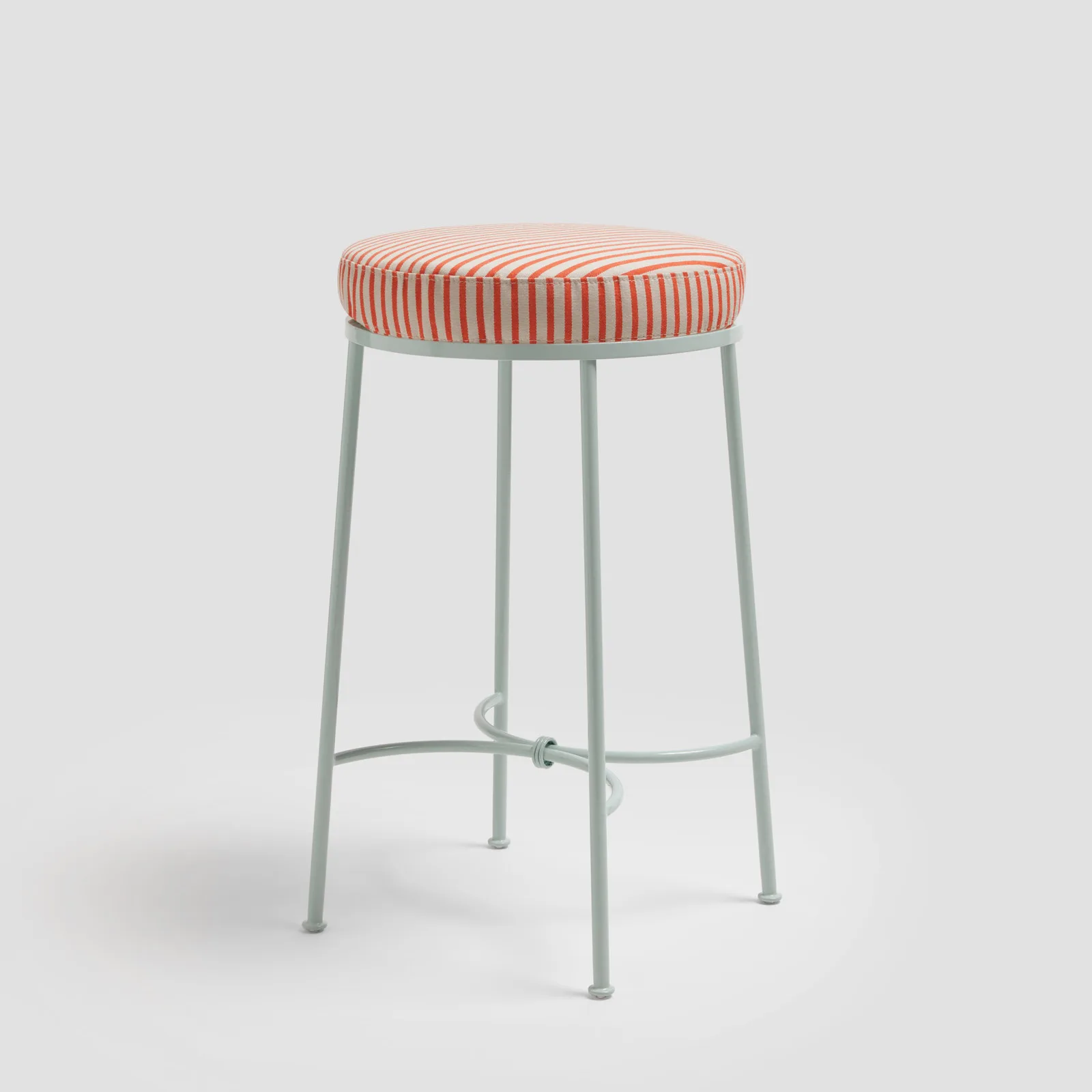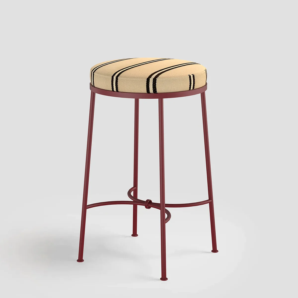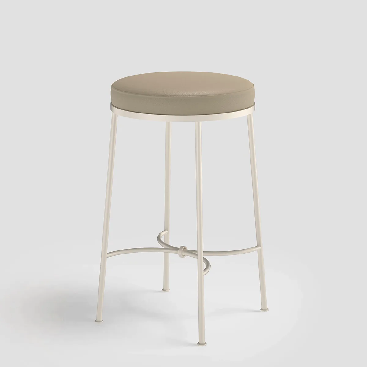 Elegant arched motifs brace the stool’s steel frame, finished with a delicate link detail that adds subtle embellishment.