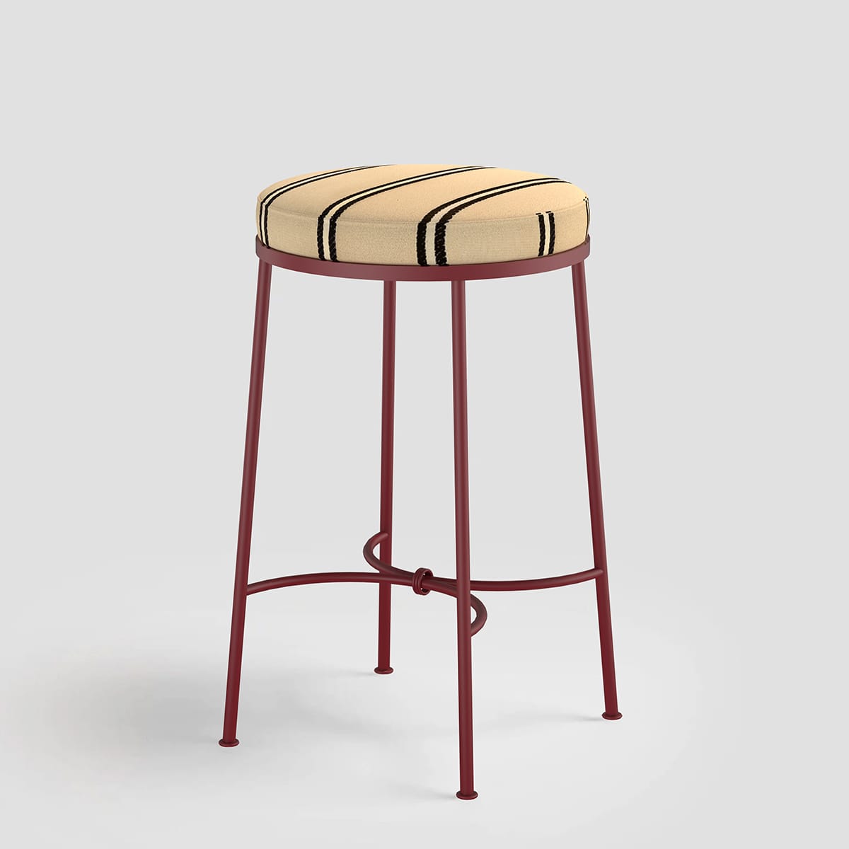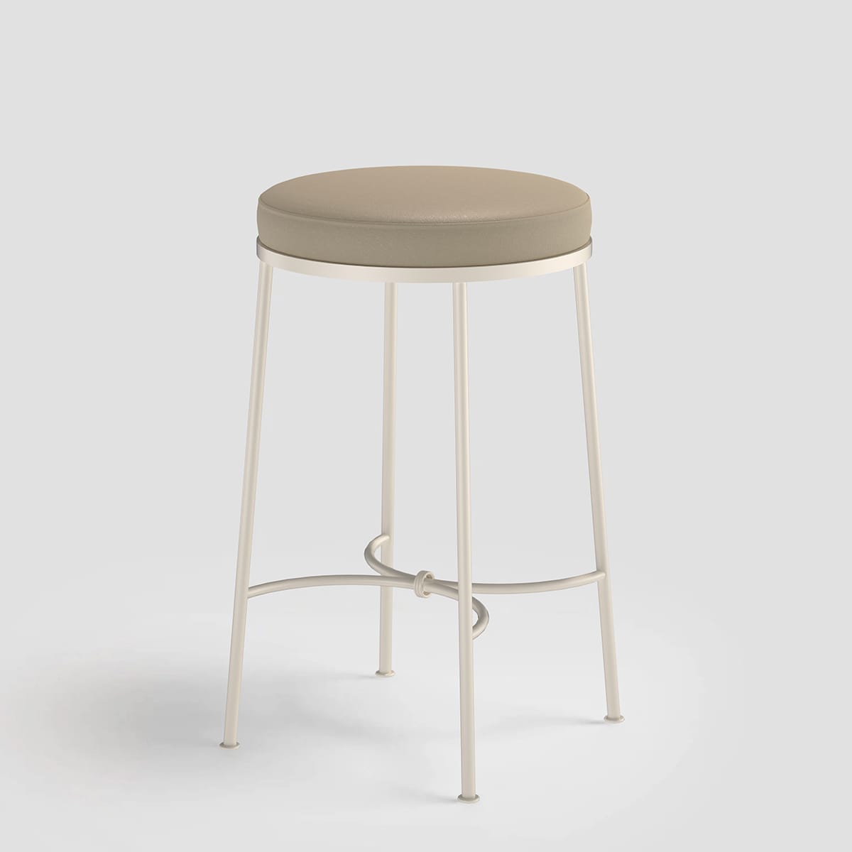 Elegant arched motifs brace the stool’s steel frame, finished with a delicate link detail that adds subtle embellishment.