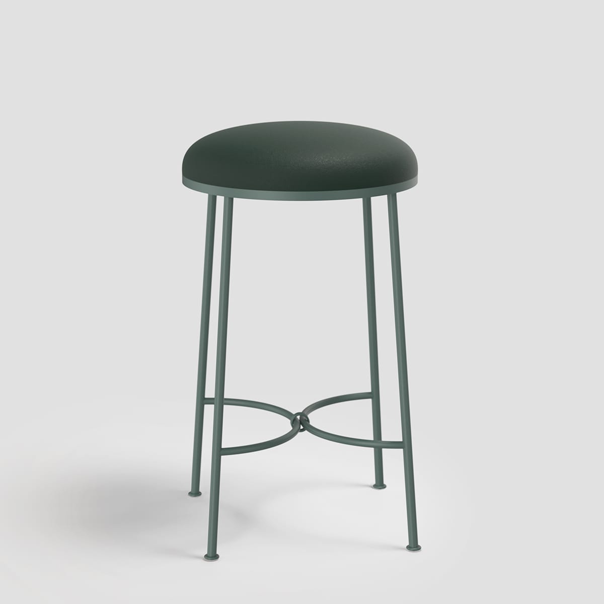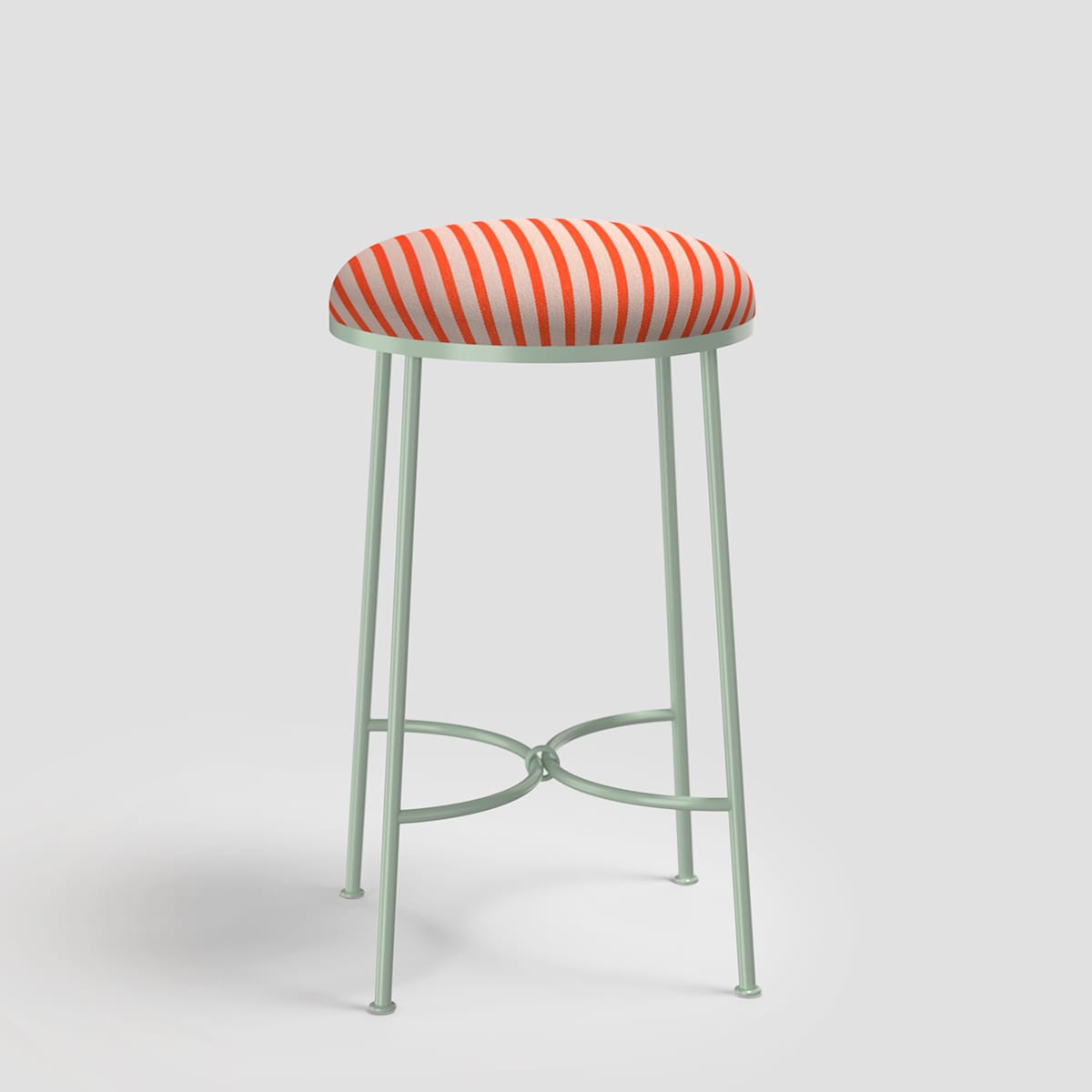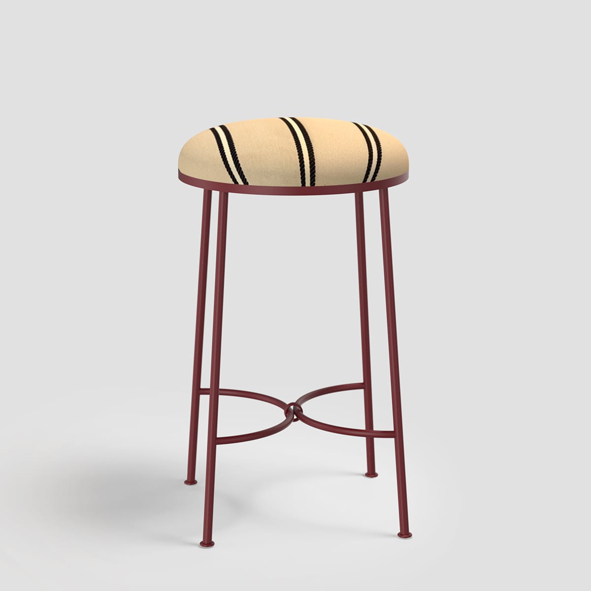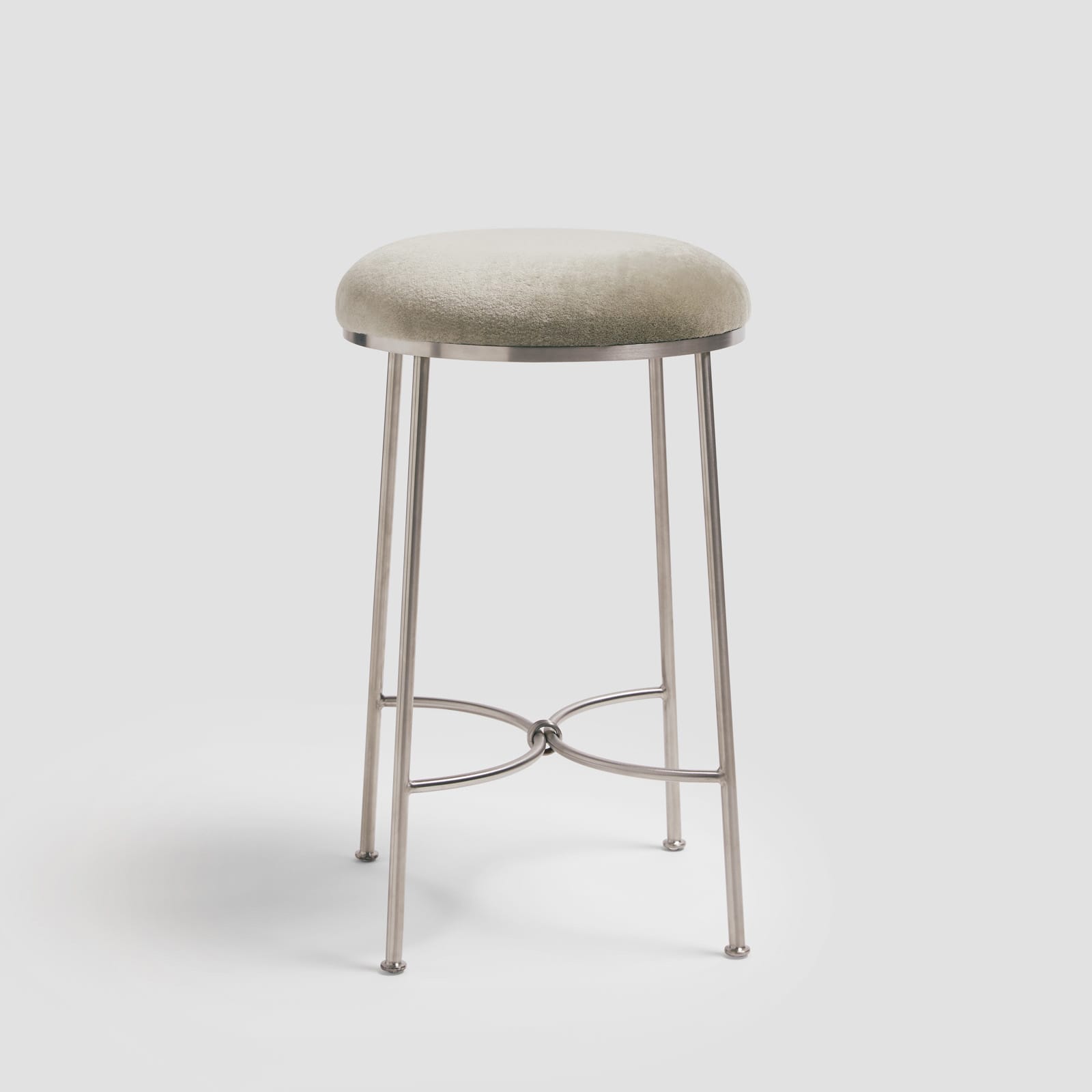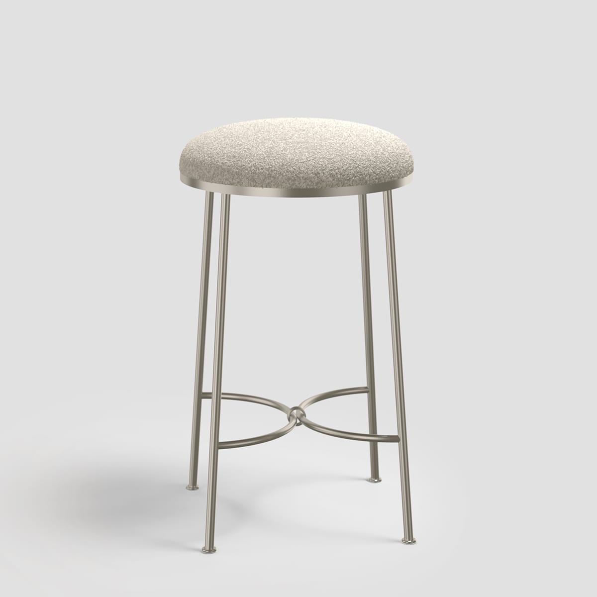 Linished stainless steel frame with a weighty and dimensional bouclé cushion by Mokum