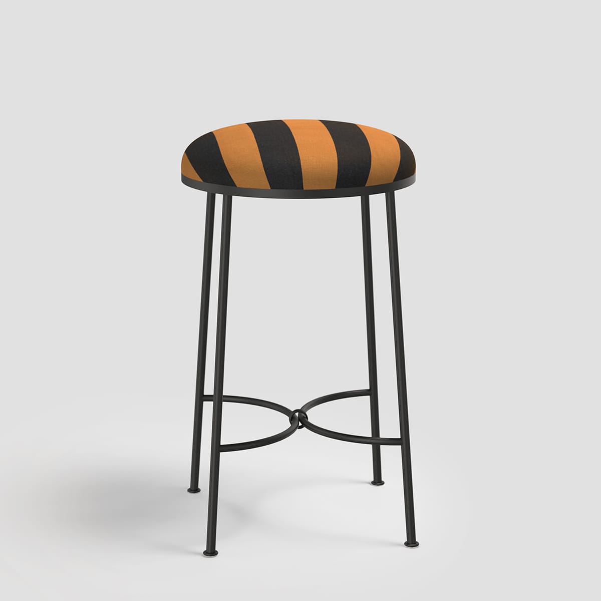 Blackened steel frame with hard-wearing canvas cushion by Dedar