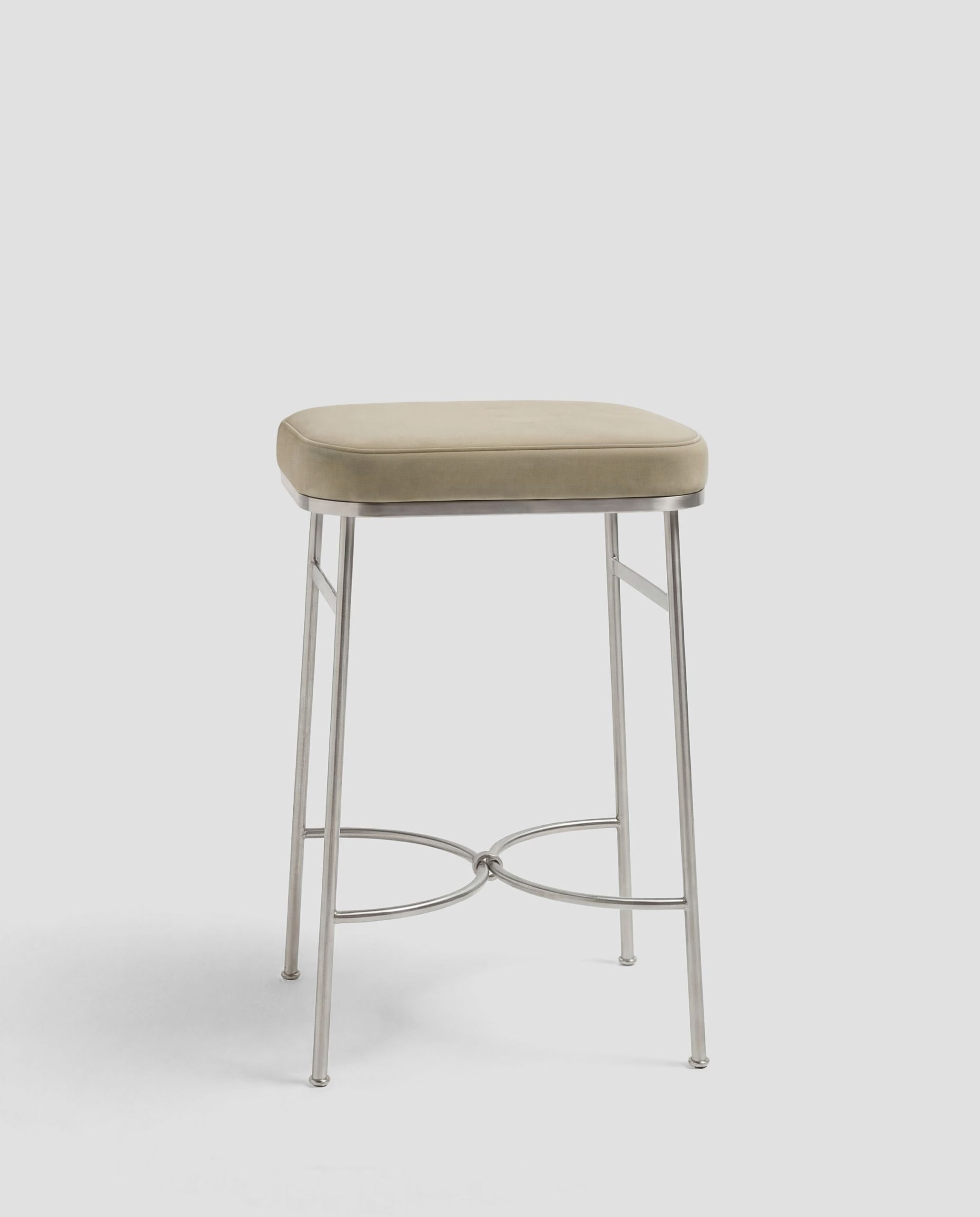 Linished stainless steel frame with alpaca velvet cushion by Mokum